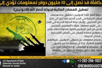 كشفت العقوبات الجديدة التي فرضها مكتب مراقبة الأصول الأجنبية (OFAC) التابع لوزارة الخزانة الأمريكية أن قادة الحوثيين نسقوا بشكلٍ نشط مع مسؤولين روس وصينيين لضمان عدم استهداف سفنهم خلال الهجمات البحرية المستمرة التي يشنها الحوثيون في البحر الأحمر. ووفقًا لوثائق وزارة الخزانة، قدّم (محمد علي الحوثي) -وهو عضو بارز في اقرأ المزيد…